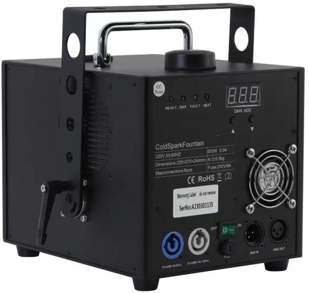 Az MK-E17 hidegszikrázó gép egy innovatív megoldás, amely vízszintes és 30 fokos szögben is képes szikrákat lövellni, így új dimenziót ad a színpadi látványhatásoknak. A DMX vezérlés vagy távirányító segítségével rugalmasan beállítható a munkaidő és a szórási távolság. A gép Cold Spark Powderrel működik, amely egy 200 g-os adaggal 15 perces látványt biztosít.